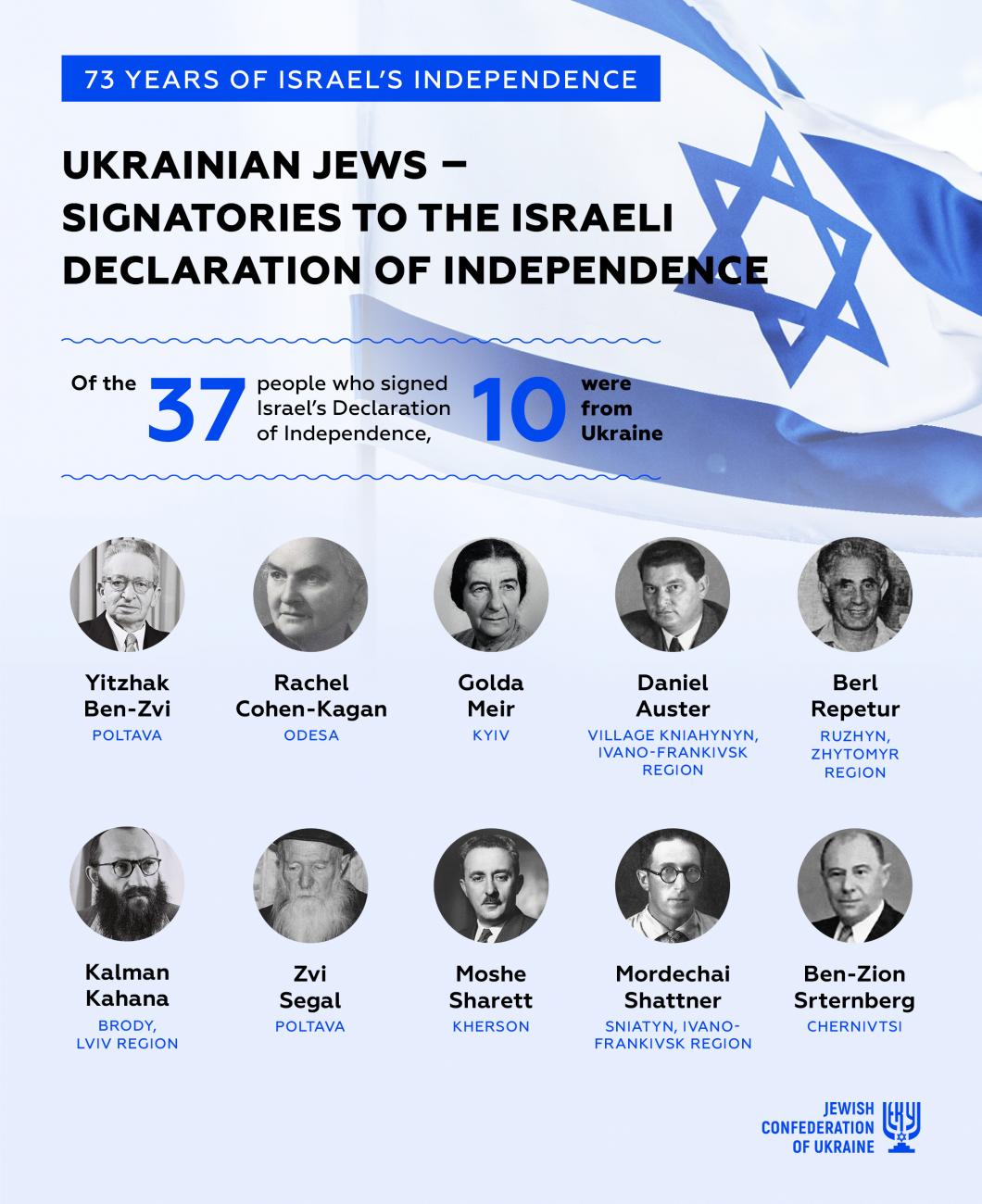 Among the pioneers referred to in the Declaration, there were also many Jews who came from the territory of current Ukraine. The Declaration itself was signed in the former house of the first mayor of Tel Aviv, Meir Dizengoff, a significant part of whose life was associated with Ukraine, wrote JCU President Boris Lozhkin on Facebook.