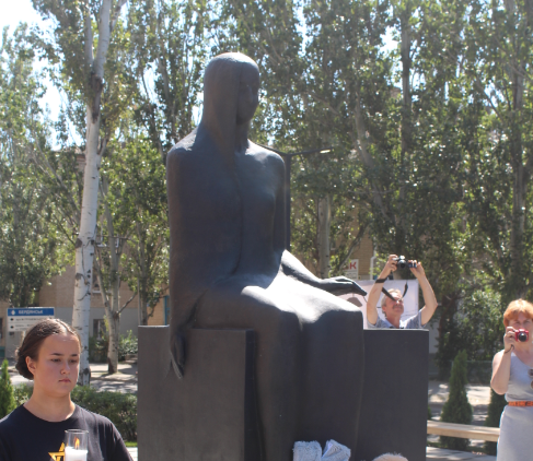 «Композиція «Плач за ненародженими» скульптора Олександра Дяченка була встановлена на вулиці Гетьманській, якою в роки окупації вели на розстріл мелітопольських євреїв. Всього під час війни було знищено понад 14 000 мирних жителів Мелітополя, з яких 12 000 - євреї», - написав Ложкін.
