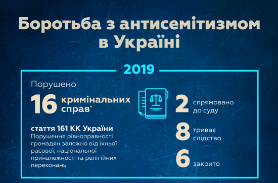 14/03/2020 МВС України: З початку року відкрито 4 кримінальні справи щодо осіб, які вчинили злочини проти євреїв та їх святинь Read more about МВС України: З початку року відкрито 4 кримінальні справи щодо осіб, які вчинили злочини проти євреїв та їх святинь